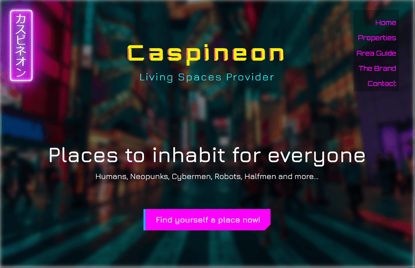 Cyberpunk and dystopian themed futuristic real estate website.